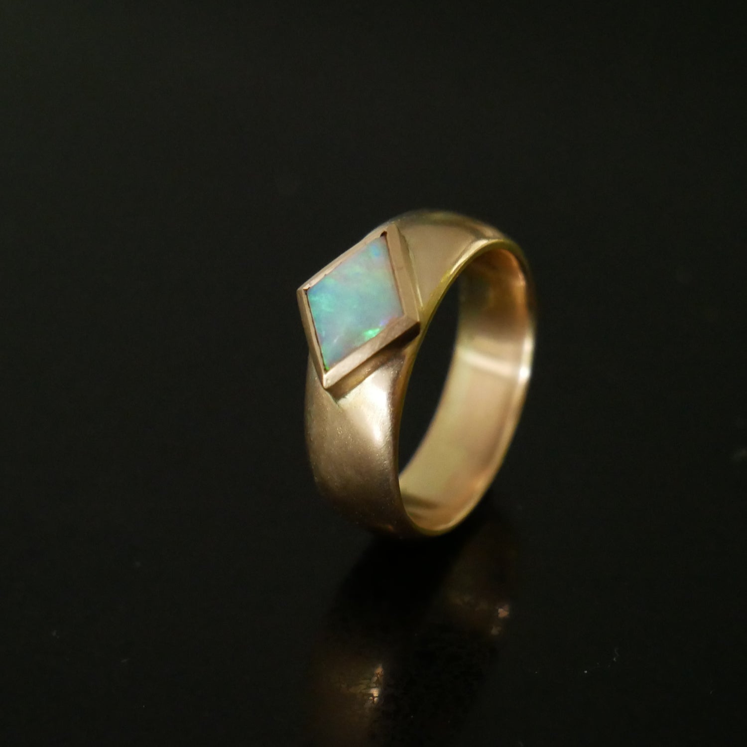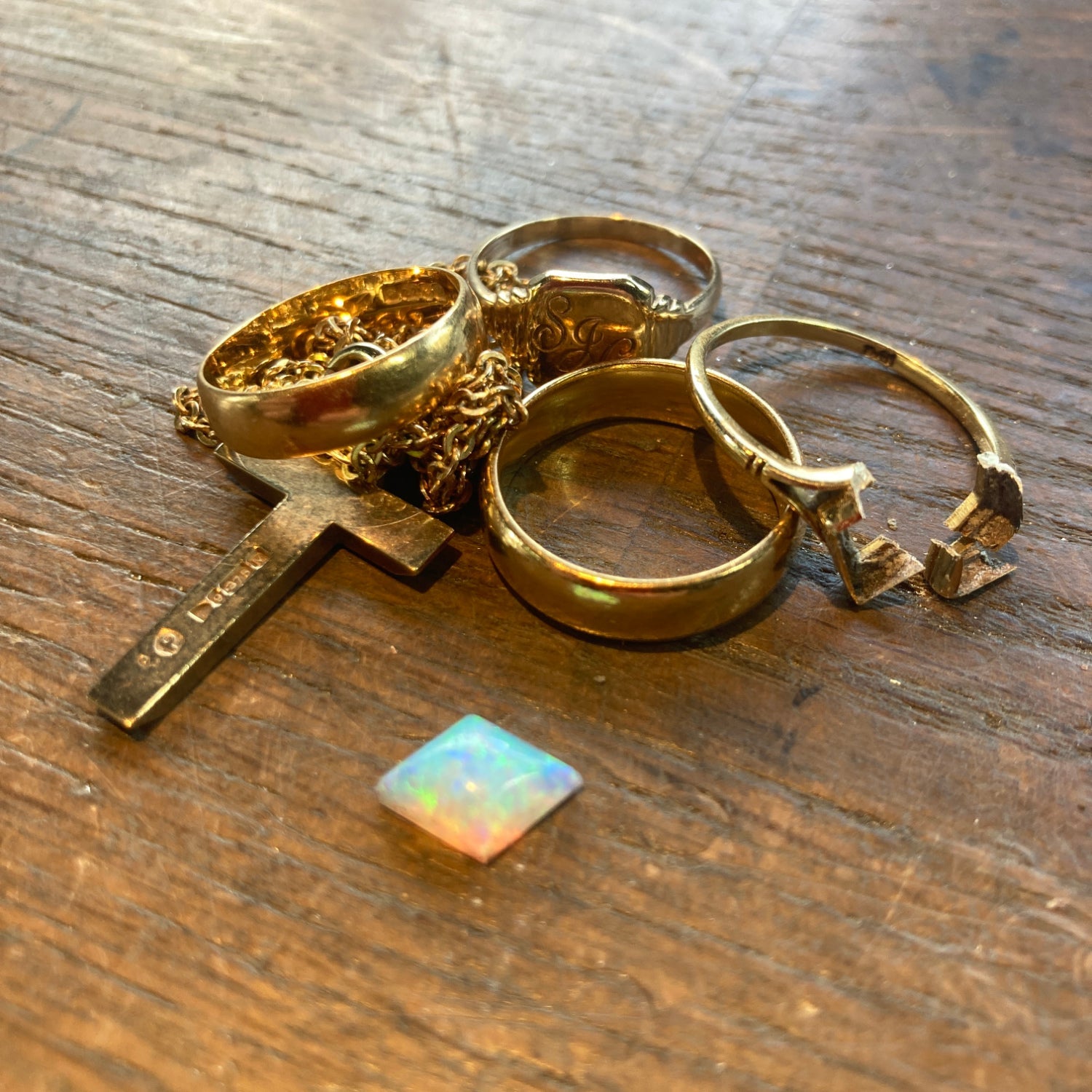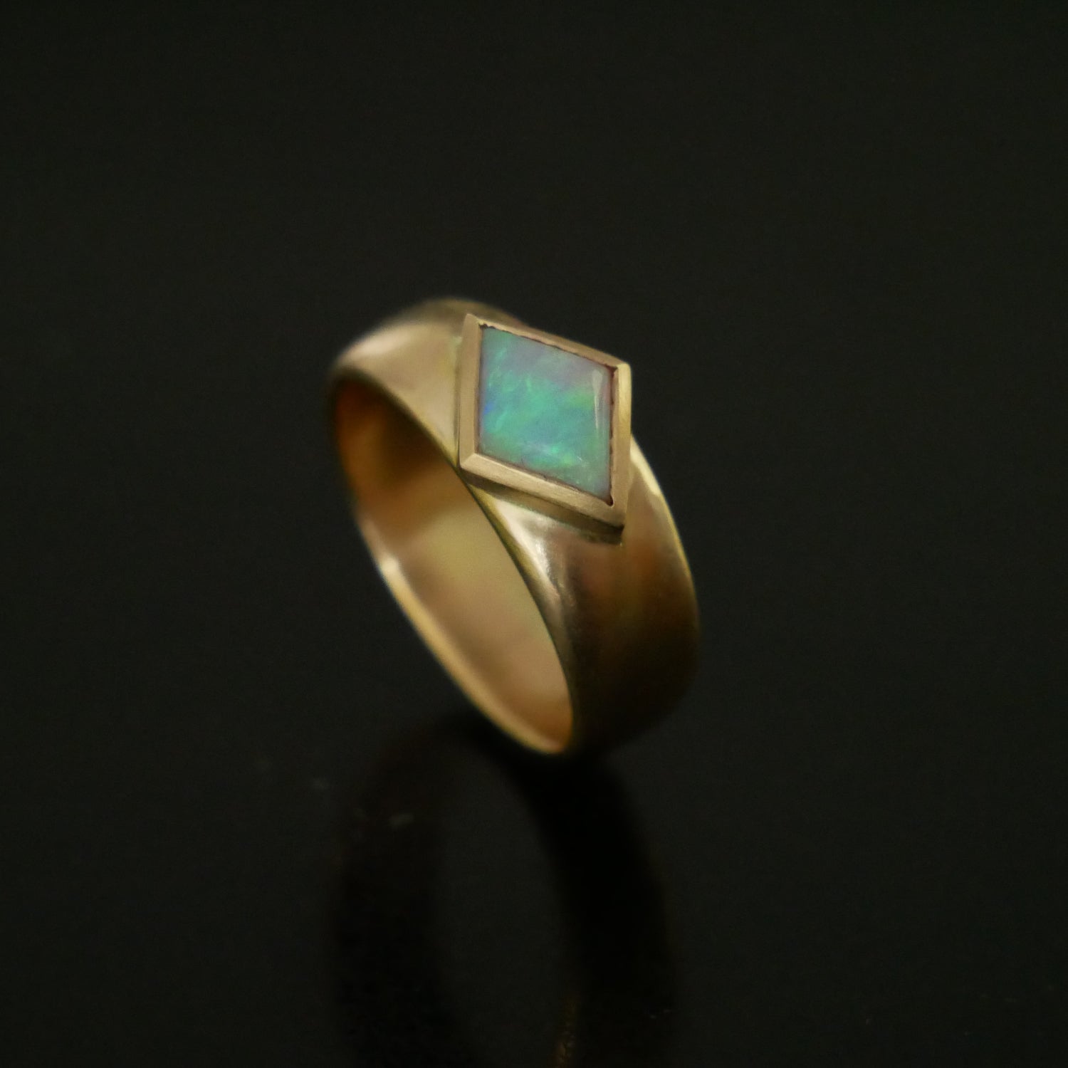 This unusual stone was set in a ring Alice's client no longer wore but had huge sentimental value. She took the stone out of the ring, added some other pieces for extra gold and made this simple chunky ring to showcase this beautiful opal.